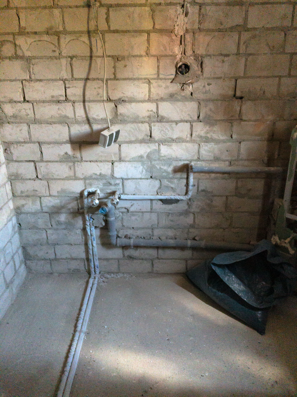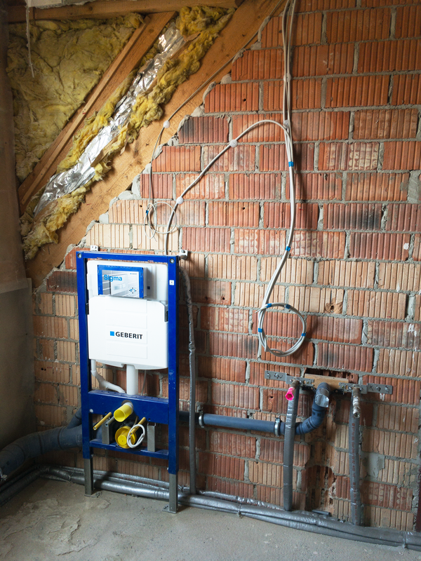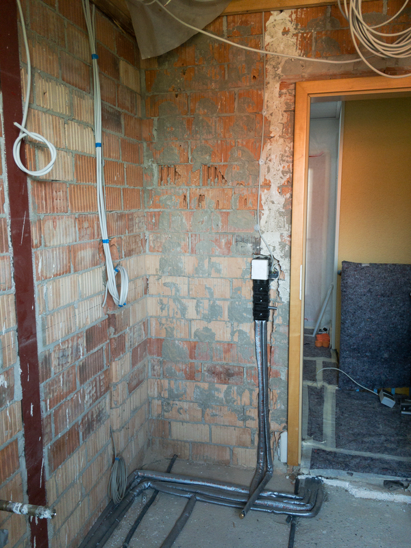 Zuerst haben wir mit der Neuverlegung der Warm- und Kaltwasserleitungen aus Kunststoff begonnen. Es folgte die Neuverlegung der Abflussleitungen aus schallgedämpften hochtemperaturbeständigen Abflussrohren.